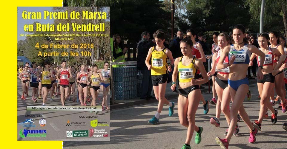 El proper diumenge 4 de febrer, se celebrarà el Campionat de Catalunya de Marxa Absolut, Sub.23, Sub.20,Sub.18 i Màster, en el marc del 3r Gran Premi de Marxa en ruta del Vendrell, organitzat pel Club Atletisme Runners elvendrell als barris Marítims de Coma-ruga i Sant Salvador.
