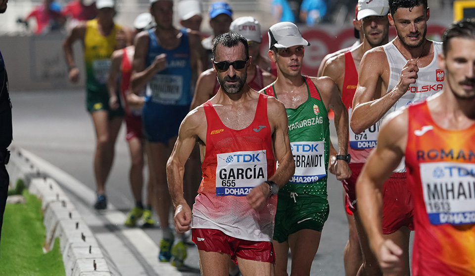 Jesús Ángel García, en la seva tretzena participació en un mundial, es va classificar en una magnífica vuitena posició a la prova dels 50 km marxa amb un temps de 4h11:28 i unes condicions extremes de calor i humitat. A la mateixa prova, a la categoria femenina, Mar Juárez també va tenir una excel·lent actuació classificant-se en la desena posició i un temps de 4h39:28.
