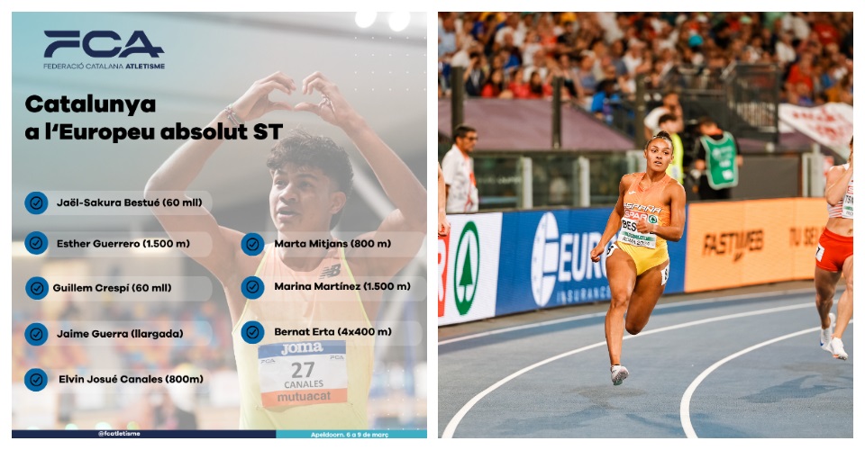 Començarem donant els noms dels presents. Els nou atletes amb llicència FCA presents seran Elvin Josué Canales, Esther Guerrero, Jaël-Sakura Bestué, Jaime Guerra, Marina Martínez, Marta Mitjans, Guillem Crespí, Bernat Erta i Pol Moya. Els vuit primers representaran a RFEA i el darrer al seu país, Andorra.
