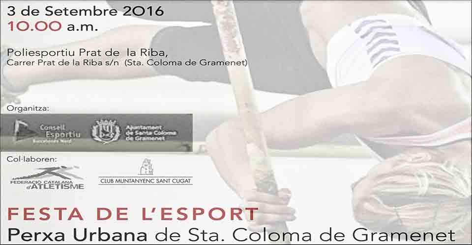 El proper dissabte 3 de setembre, se celebrarà la primera edició de la Perxa Urbana St. Coloma en el marc de La Festa de L’Esport, organitzada pel Consell Esportiu Barcelonès Nord i l’Ajuntament de Santa Coloma de Gramenet.